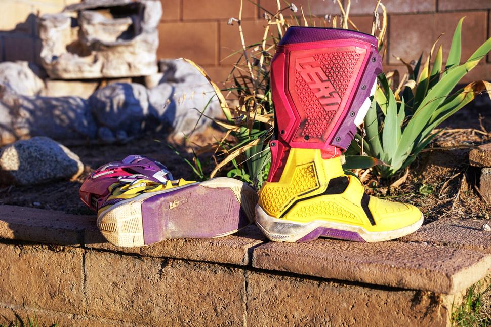 За 3 года круглогодичной езды на кроссовой трассе, плюс немного эндуро, ботинки, конечно, обтрепались, но остались в очень неплохой форме. Обычно за такой срок мотоботы начинают рваться, пропускать воду, терять жёсткость в лодыжке и зацеп на подножках. Но с Leatt 5.5 пока не случилось ничего из этого. Они, конечно, стали немного мягче по сравнению с новыми, но никаких повреждений у них пока нет.