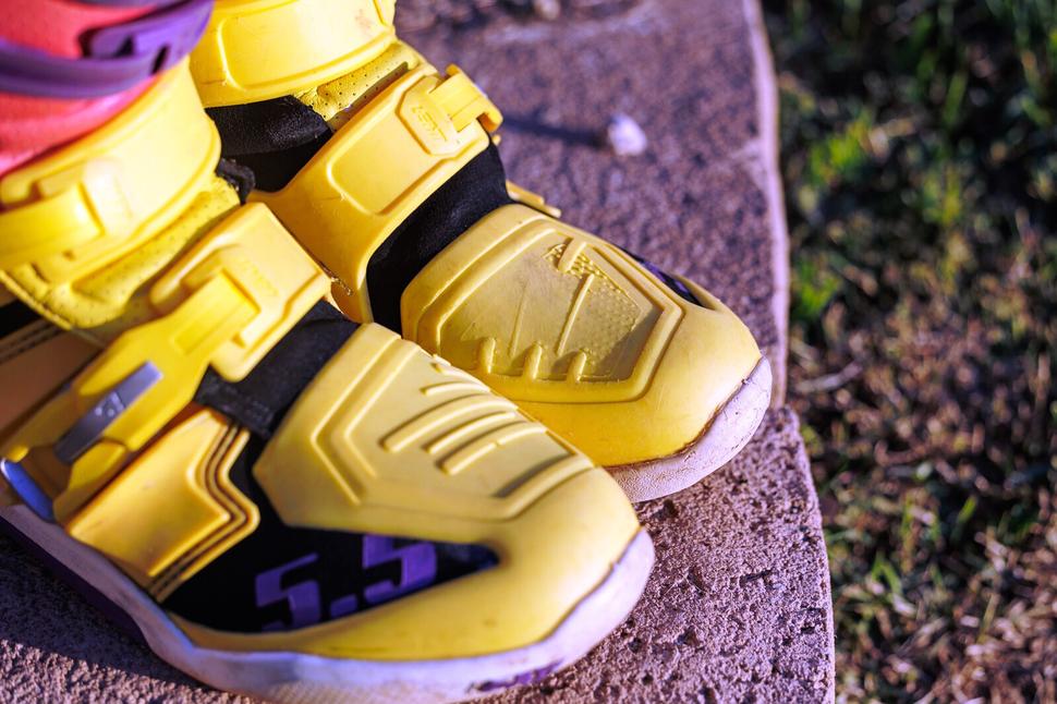 Большинство кроссменов предпочитают плотную посадку обуви, и чтобы она не давала согнуть ступню вбок, но позволяла работать лапками тормоза и коробки. Небольшой носок на 5.5 не застревает под лапкой коробки на большинстве кроссовых мотоциклов. Система Flexlock (защитный шарнир) имеет возможность регулировки при помощи сменных проставок, но на старой паре 5.5 стояли оригинальные проставки с самого первого дня, и по сравнению с новой парой они показались чуть разболтаны. Не то чтобы в старой паре были какие-то проблемы с зацепом на мотоцикле, но в новых связь с шасси чувствуется намного чётче, и после замены проставок на старых ботах на более жёсткие информативность тоже повысилась. Так что, владельцы 5.5, попробуйте опциональные проставки обязательно. Особенно на старых ботинках, которым новые проставки придадут жёсткости и поддержки.