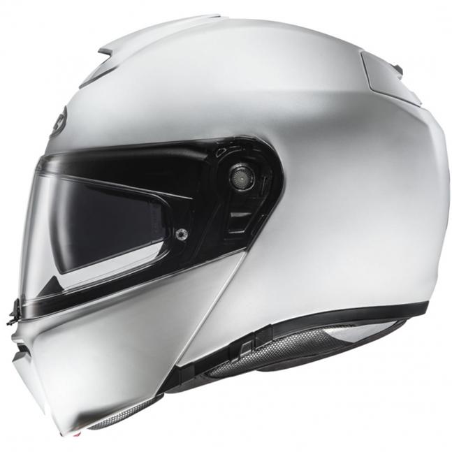 Но давайте по порядку. Не так давно модуляры выглядели громоздко в сравнении с обычными интегралами. HJC утверждает, что RPHA 90 повторяет интеграл по форме и всем габаритам, включая вес, но обладает всеми удобствами модуляра. И знаете, его действительно почти невозможно отличить от интеграла, когда "челюсть" защёлкнута. Возможно, дело в графическом оформлении моего экземпляра, потому что по фотографиям однотонных версий совершенно ясно видно, что это модуляр.