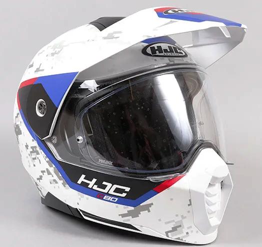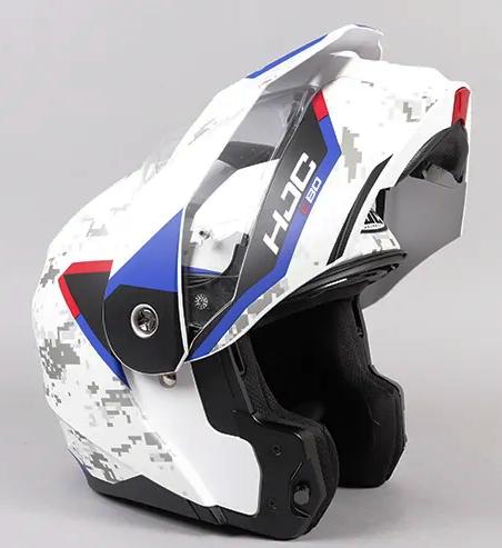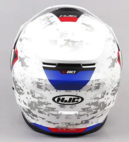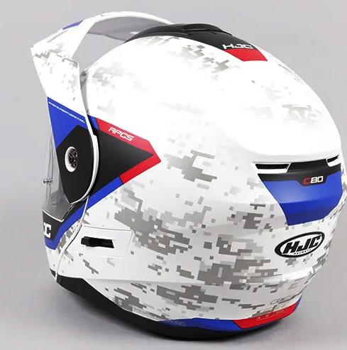 Шлем HJC C80 относится к категории модуляров, или флип-апов, то есть имеет откидывающуся вверх челюсть. Его интересной особенностью является съёмный козырёк от солнца, откидывающийся вместе с нижней частью. Это достаточно бюджетная модель, ценник на которую составляет 209,99 фунтов в однотонных расцветках и 239,99 фунтов в нескольких графических решениях.