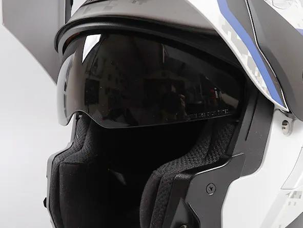 В комплект со шлемом входит Pinlock 70 - противозапотевающая вставка среднего класса. Она работает неплохо, но если вы носите очки, то, как и в любом другом шлеме, придётся приоткрывать визор для обдува в холодную погоду, иначе запотевать будут именно они.