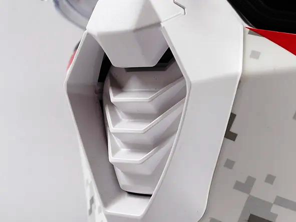 Как и следует ожидать от недорогого, но качественного шлема, его скорлупа выполнена из поликарбоната. Матовая отделка и качественные наклейки позволяют избежать появления отпечатков пальцев, а следы от капель дождя легко удаляются влажной салфеткой или жидкостью для мытья стёкол.