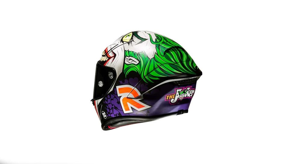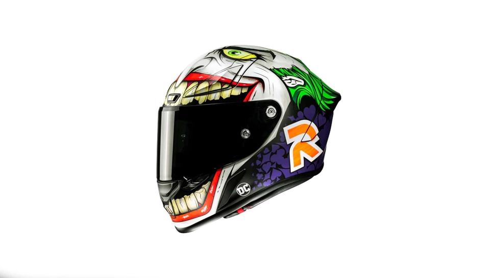 Популярный трековый шлем HJC RPHA 1 выпускается в нескольких графических вариантах, и недавно линейка пополнилась ещё одним. Новая графика посвящена заклятому врагу Бэтмена, Джокеру, улыбка которого занимает теперь центральное место на топовой модели HJC.