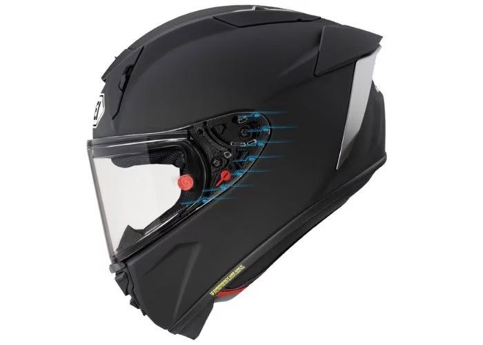 Кстати, о щёчных подушках: Shoei увеличили их площадь на 16,5 процентов “для более надёжной и удобной посадки, особенно на высоких скоростях”. Остальная часть внутрянки по сути та же, что и раньше: X-Fifteen имеет полностью съёмный, моющийся, регулируемый и заменяемый подклад 3D Max-Dry Custom Interior System II, поглощающий и рассеивающий пот быстрее, чем традиционный нейлон.