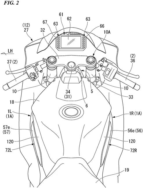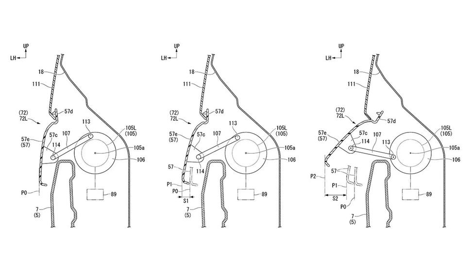 В патентах, зарегистрированные в Европе, показан спортбайк CBR1000RR, оснащённый подвижными панелями в области, где колени райдера охватывают корпус мотоцикла по бокам. Под ними имеется простой поворотный актюатор, а их верхние края закреплены на шарнирах, что позволяет панелям подниматься вверх и раскрываться наружу с ощутимым усилием при срабатывании привода.