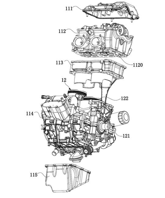 Однако, китайская компания CFMoto планирует в корне изменить эту ситуацию, подав патентную заявку на рядный двухцилиндровый мотоциклетный двигатель, соединённый с клиноремённым вариатором.