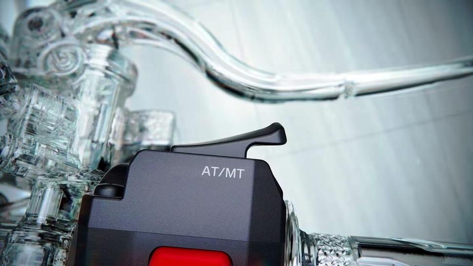 В ручном режиме система автоматически управляет сцеплением, а передачи переключаются кнопками на левом пульте. Варианта переключения два: в первом курок под указательный палец переключает вверх, а кнопка под большим пальцем - вниз, а во втором указательный палец используется для обеих операций: тянешь рычажок на себя для переключения вверх, нажимаешь от себя для переключения вниз, а большой палец остаётся на грипсе. Кстати, даже когда трансмиссия находится в автоматическом режиме, кнопки переключения на левом пульте позволяют сменить передачу вручную.