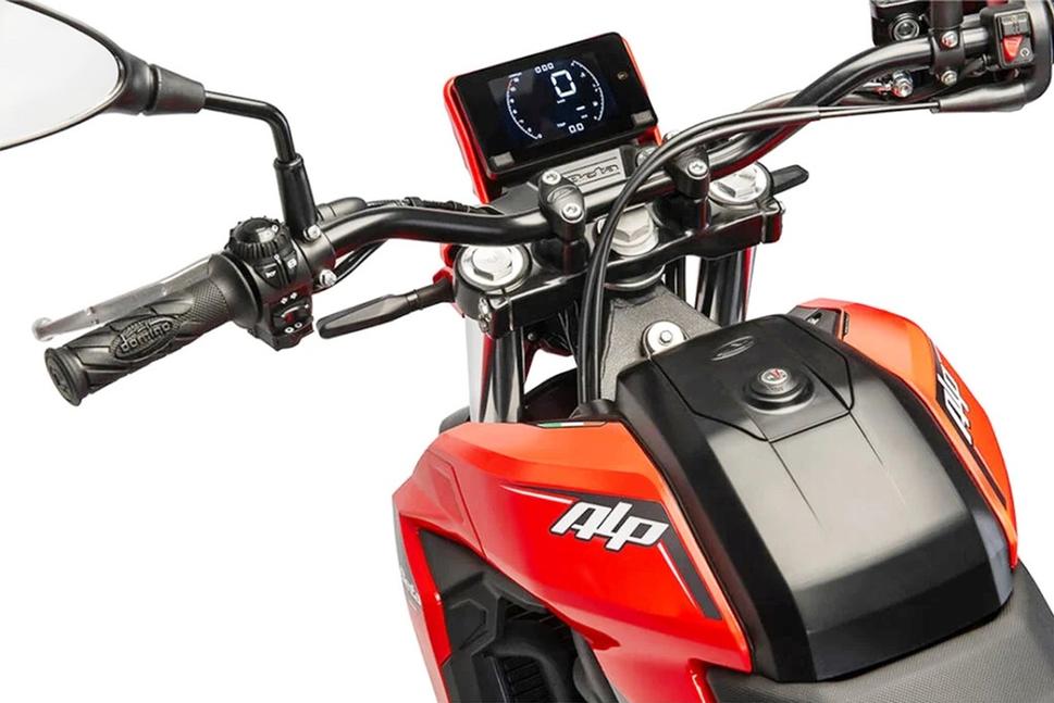 11-литровый бак с резервом 2,3 литра обеспечит Alp-ам достаточно большой запас хода благодаря расходу 3,5 литра на 100 километров. Значит, с полного бака мотоцикл в теории способен проехать 300 с лишним километров.