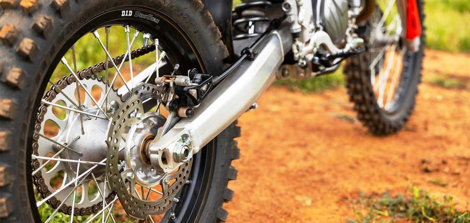 В перьях вилки Honda CRF250RX 2025 стоят пружины жёсткостью 4,6Нм, а амортизатор оснащён пружиной на 48Нм. Таким образом, обе подвески на шаг мягче, чем на CRF250R. Прошлая модель отличалась тем, что задняя подвеска была несколько мягче передней, особенно под весом налипшей на мотоцикл грязи. Модель 2025 года получила более жёсткую заднюю подвеску с лучшей поддержкой, так что теперь вилка кажется мягче.