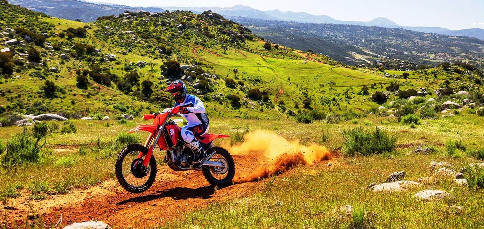 Двигатель не самый резвый и мощный, но то, как шасси Honda держится за рельеф и выжимает тягу из заднего колеса, не имеет себе равных. И несмотря на то, что это всего лишь четырёхтактная 250-ка, на больших подъёмах она отлично справляется.
