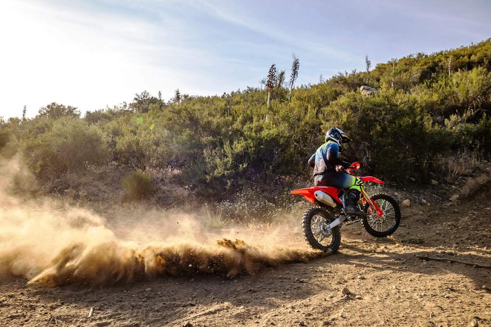 Honda CRF450RX 2023 года стала более дружелюбной, а удобство использования и управляемость - важные качества мотоцикла для тех, кто пробует выйти за пределы своих возможностей на бездорожье. Более плавный, чем когда-либо, CRF остаётся чрезвычайно мощным, с более чем приличными показателями мощности и крутящего момента. 44-миллиметровый корпус дроссельной заслонки, обновлённые профили кулачков распредвала, доработки выпускного тракта дают заметные отличия в ощущении мотоцикла буквально с самого старта - он ощущается более плавным и послушным. Honda CRF450RX по-прежнему готов к гонкам в заводском состоянии, только теперь он не выматывает райдеров при езде в более спокойном темпе.