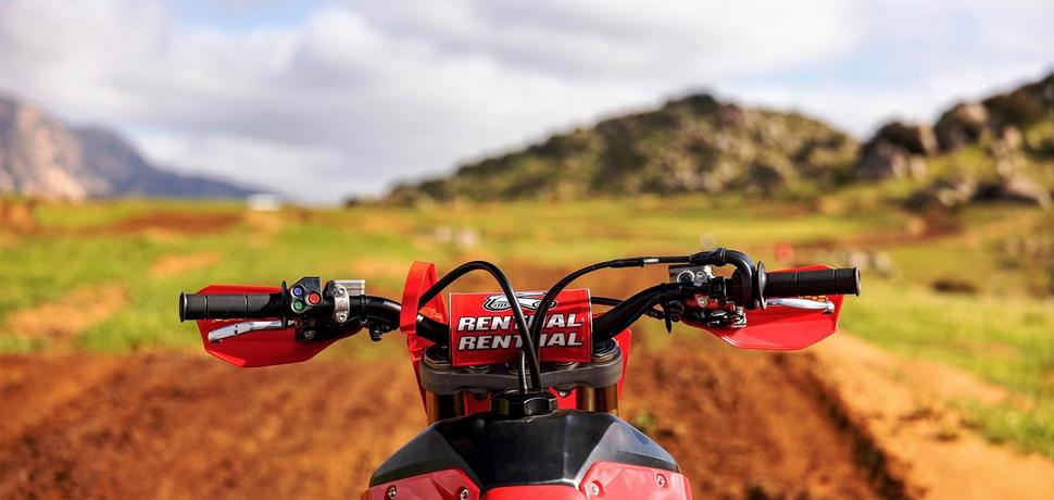 Флагманский гоночный эндуро для закрытых трасс Honda получил несколько особых компонентов. Например, фирменные красные гарды на руле защищают пальцы, и они весьма хороши. Их вполне стоит поставить и на обычную CRF450R, благо, процедура совершенно несложная.