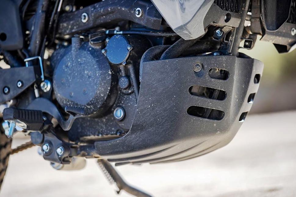 652-кубовый одноцилиндровый инжекторный двигатель жидкостного охлаждения с пятиступенчатой трансмиссией на Kawasaki KLR650 S точно такой же, как на трёх других моделях. Что касается коробки передач, то они отлично разнесены, отчётливо отличаются друг от друга и хорошо подходят для разных условий местности, с которыми KLR предстоит столкнуться в путешествиях. Верхняя передача - повышенная, которая предназначена для экономии топлива и снижения оборотов на скоростях свыше 80км/ч. Заядлые поклонники KLR сетуют на отсутствие шестой передачи, но на самом деле для обычной езды вполне хватает штатных пяти.