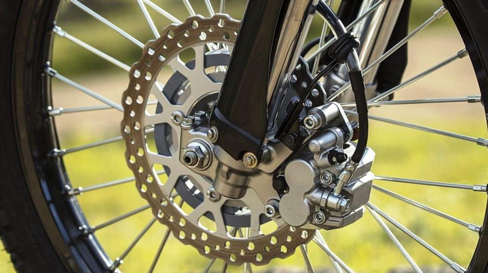 Съезжаю с большого шоссе на небольшую спокойную трассу, идущую вдоль озера, и финальная передача 14/40 обеспечивает прекрасный отклик на низах и средних для приятной динамичной езды в поворотах. Мотора с лихвой хватает для обычной дорожной езды, а вот 21-е переднее колесо и грязевые шины в серии поворотов - явный минус. Передний тормоз, состоящий из двухпоршневого суппорта Nissin на 250-миллиметровом диске, и задний однопоршневой на 240-м диске, дают вполне пристойное тормозное усилие на асфальте. Им несколько недостаёт грубого начального закуса, который присущ более дорогим дорожным мотоциклам, но это и правильно, с учётом внедорожной направленности мотоцикла: на грунте злой тормоз может натворить бед.