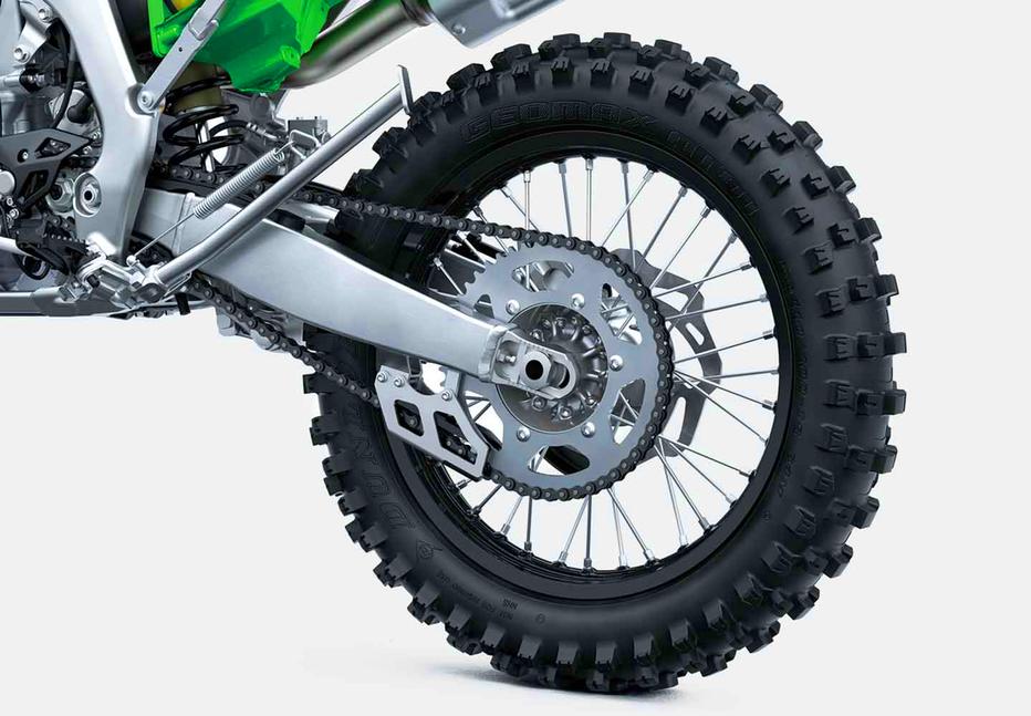 Тем не менее, возможность выбора любой из двух оставшихся топливных карт сохранена: стандартная карта выбирается при помощи зелёной заглушки, а агрессивная - при помощи белой. Обе дополнительные заглушки поставляются вместе с мотоциклом, а также пользователю доступна возможность запрограммировать свои персональные карты при помощи устройства KX FI Calibration Controller, доступного как опция. Дополнительная звезда сближает передачи, и для езды на быстрых мероприятиях это далеко не преимущество. По сцеплению от кроссовой модели отличий нет - это всё то же унаследованное от Kawasaki KX450 беспроблемное сцепление с гидравлическим приводом Nissin.
