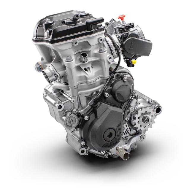 Новый инжекторный двухверхневальный четырёхтактный двигатель рабочим объёмом 250куб.см с жидкостной системой охлаждения отличается от прошлой версии в том числе геометрией цилиндро-поршневой группы: диаметр поршня был увеличен, а ход уменьшен. Степень сжатия составляет 14,5:1, а предельная скорость вращения равна 14000об/мин. Двигатель имеет обновлённый корпус и головку цилиндра, а кроме того, он наклонён в шасси на два градуса назад, благодаря чему звезда установлена на 3мм ниже для снижения приседания шасси на резких ускорениях.