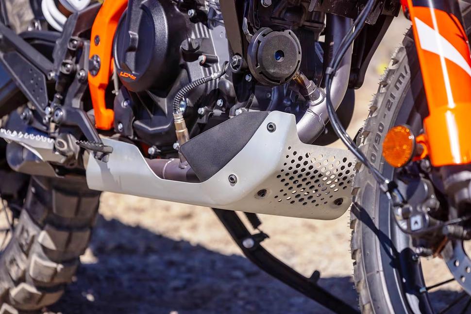На трассе KTM 390 Enduro R 2025 вполне комфортен с минимумом вибраций. Длинные передачи и тяговитые средние позволяют легко обгонять автомобили и разгоняться до 150 и выше. На извилистом просёлке вышивать в веренице поворотов, переключаясь с помощью квикшифтера - настоящее удовольствие. А проскальзывающее сцепление побуждает агрессивных райдеров скидывать передачи и срываться в управляемые заносы при входе в поворот. Но опять же, для максимальной скорости на выходе не опускайте обороты ниже средних.