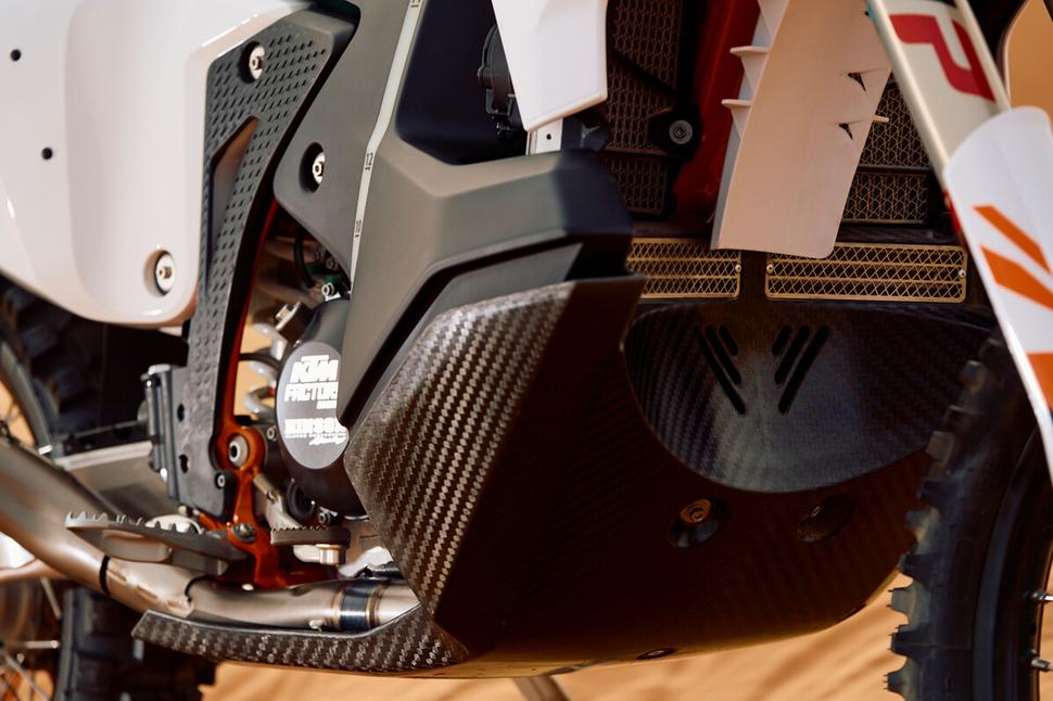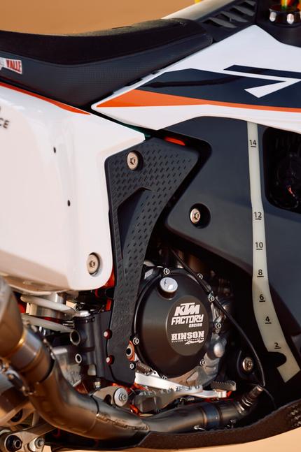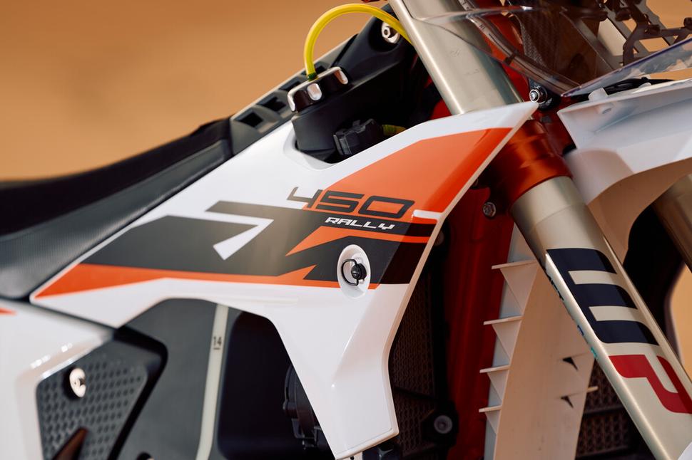 Также KTM 450 rally replica 2025 отличается хорошо продуманным пространством для инструментов, встроенным в крышку двигателя. Это даёт райдерам быстрый доступ к гаечным ключам и облегчает мотоцикл.