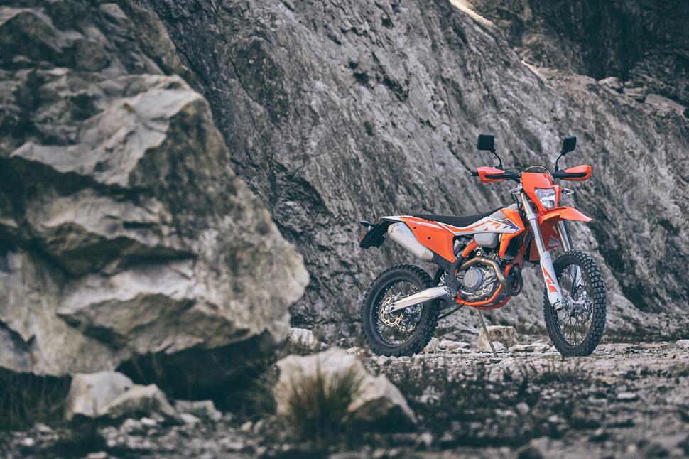 KTM 500 EXC-F является несомненным лидером в сегменте дуал-спорта. Эта модель не просто способна преодолеть практически любую местность, она ещё и делает это на весьма высоком уровне. Большой одноцилиндровый мотор обеспечивает достаточную мощность для забега по пустыне, подъёма в горы и путешествия на шоссейных скоростях. И хотя в сложных местах этот мотор недостаточно мягок и покладист, его высокая мощность и резвый отклик окупается в любых других сценариях езды.