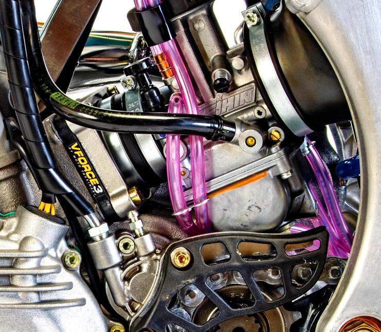 Двухтактники TM 250 оснащены мощностным клапаном с электронным управлением. Он работает как надо, но самое забавное - это процедура его сброса. Поскольку TM 250 использует специальные карты для каждой передачи, сервомотор клапана управляется ЭБУ исходя из того, какая сейчас воткнута, и с какой скоростью вращается двигатель. Работу электроклапана можно перенастроить для изменения характера двигателя, а иногда его нужно сбрасывать, чтобы он работал правильно. Сервомотор двигает клапан вперёд и назад, но не отслеживает его положения и не знает, полностью ли открывается и закрывается клапан. Для его калибровки ничего дополнительно покупать не нужно, всё уже стоит на мотоцикле, а инструкция лежит на сайте.