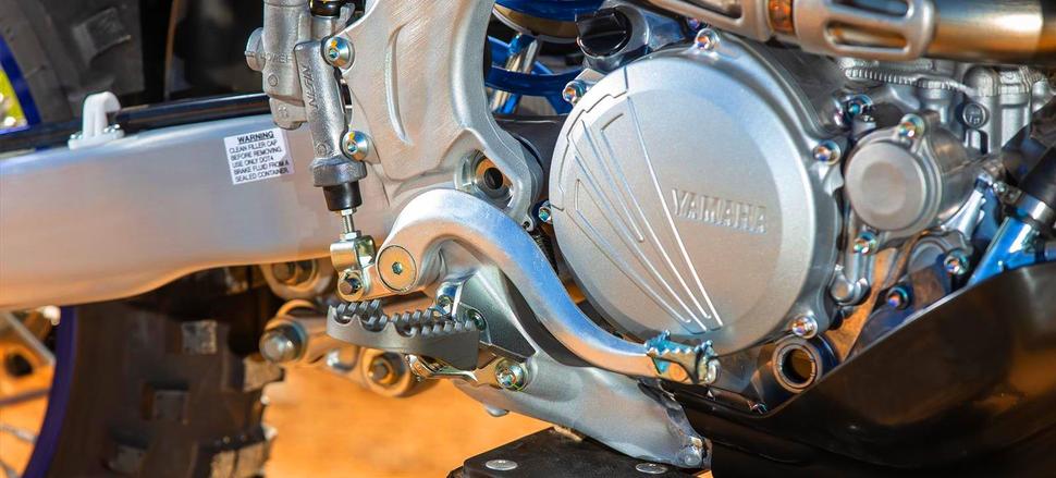Шестиступенчатая трансмиссия идентична YZ250FX, и её передачи отлично подобраны как для сложного технического ландшафта, так и для открытых просек. Первые две передачи особенно удобны, на второй можно держать очень низкую скорость, не теряя в отклике на газ, и при этом не переключаться на третью до очень высоких оборотов. Благодаря на удивление длинной второй, переключаться на затычных местах вообще приходится намного реже. Третья передача сближена со второй, а четвёртая, пятая и шестая разнесены ощутимо шире.