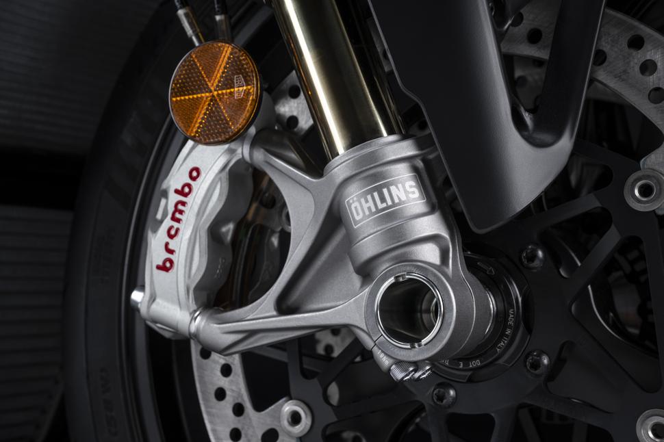 Что касается Ducati Streetfighter V4 S, то этот вариант оснащён полуактивной подвеской Ohlins (43-миллиметровая перевернутая вилка NIX30 и амортизатор TTX36) с интерфейсом SmartEC 2.0, обеспечивающим универсальность, эффективность и скорость настройки. Кроме того, в версии V4 S диски Marchesini откованы из алюминиевого сплава, что даёт важные преимущества с точки зрения манёвренности и отзывчивости при ускорении и торможении благодаря уменьшению неподрессоренных масс.