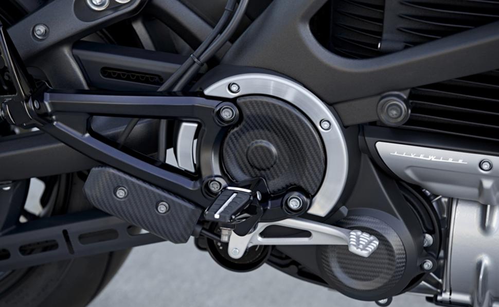 Низко расположенный и выделяющийся своим серебряным цветом двигатель жидкостного охлаждения на постоянных магнитах, известный под кодовым именем HD Revelation - это центр внимания в новой модели. Он выдаёт 105 л.с. и 116 Нм крутящего момента буквально с первых градусов хода ручки газа. Над ним размещена RESS - Система хранения возобновляемой энергии, или, по-простому, батарея номинальной ёмкости 13,6 кВт_ч (и максимальной 15,5 кВт_ч). Harley предоставляет на батарею пятилетнюю гарантию без ограничения пробега, а вообще спецы Harley Davidson полагают, что батарея прослужит весь срок службы мотоцикла. Её алюминиевый корпус работает как большой радиатор воздушного охлаждения, рёбра которого не только увеличивают площадь теплоотведения, но и создают определённую характерную эстетику, так знакомую по V-твинам Harley. Батареи хватает на 233 км в городском цикле (замеренных по стандарту MIC) и на 152 км в смешанном цикле (город/шоссе), что больше похоже на правду. Конечно, обладатели шаловливой правой руки способны существенно сократить запас хода.