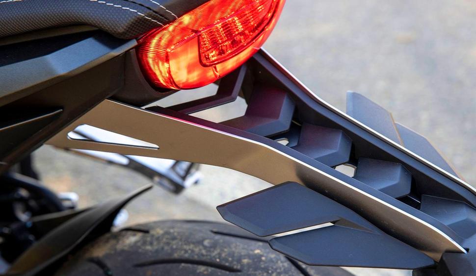 Сохраняя современный минималистичный дизайн, Honda оснастила CB650R 2021 полностью диодной светотехникой. Задние поворотники установлены на новом, более аккуратном держателе номера. ЖК-дисплей приборной панели теперь стоит под другим углом и лучше читается на ярком солнце. Дизайн приборки - современный, с белыми знаками на чёрном фоне, но CB в этом плане изрядно проигрывает в сравнении с конкурентами - например, с Trident 660, который оснащён полноцветным TFT-дисплеем и опцией беспроводного подключения телефона, причём за меньшие деньги. Тем не менее, приборная панель Honda тонкая и изящная, неплохо гармонирует с нео-ретро-дизайном.