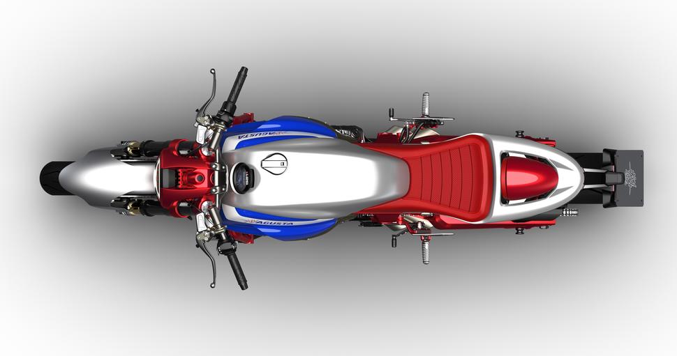 Свободно левитирующий хвост мотоцикла увенчан одиночным сиденьем с обшивкой из алькантары и своеобразным обтекателем-"плавником" на месте пассажирского. Любопытная футуристичная конструкция хвоста включает заднюю светотехнику с логотипом MV по центру.