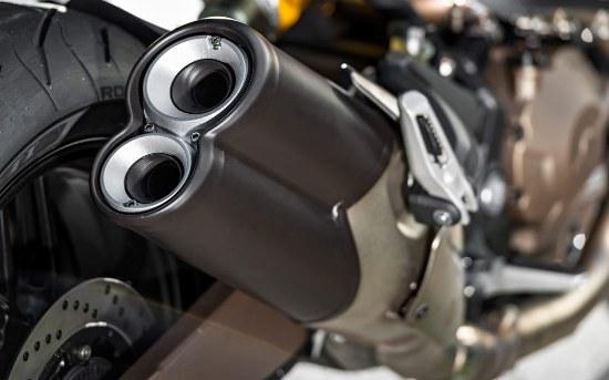 **Двигатель Testastretta с объемом в 821,1 см³ и 112 л.с. резвый, но легко управляемый. ** Если резко крутануть ручку газа переднее колесо мотоцикла поднимется, но не так резко, как у ориентированных на это байков. При езде у мотоцикла довольно стильный звук. Средний диапазон оборотов в минуту значительный, в то время как предел составляет 11000 оборотов в минуту.