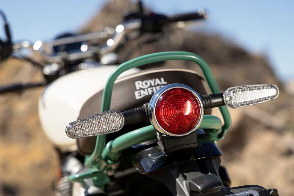 Впрочем, если говорить о Royal Enfield Bear 650, то это чуть больше, чем коричневое сиденье и шашечная резина. По сравнению с INT 650, Royal Enfield Bear 650 оснащён колёсами более внедорожного размера, имеет другую посадку, более высокий подрамник, обновлённые подвески, усиленную раму для езды по грунту. Но, как и с любым скремблером, остаётся вопрос: делает ли всё это дорожную платформу внедорожной, или речь идёт только о внешнем виде?