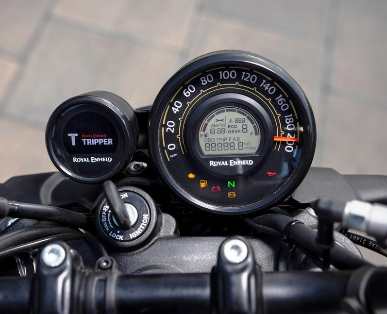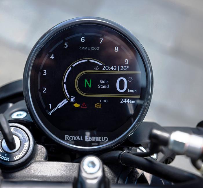 Guerilla в нескольких схемах - Playa Black, Gold Dip, Smoke Silver, Yellow Ribbon и Brava Blue смотрятся весьма элегантно и броско. Как и другие модели в линейке индийского бренда, расцветки делят Guerilla на три ценовые категории: базовый вариант выпускается в Smoke Silver и оснащается аналоговой приборкой, а два других получили TFT-дисплей, как на Himalayan. Что ж, бюджетный вариант - это не всегда плохо, особенно если по механике он соответствует более продвинутому. TFT-панель достаточно незатейливая, 4-дюймовая, с простым удобным интерфейсом и возможностью подключения смартфона с фирменным приложением Royal Enfield.