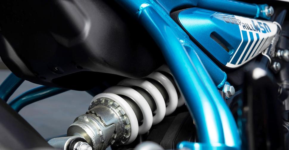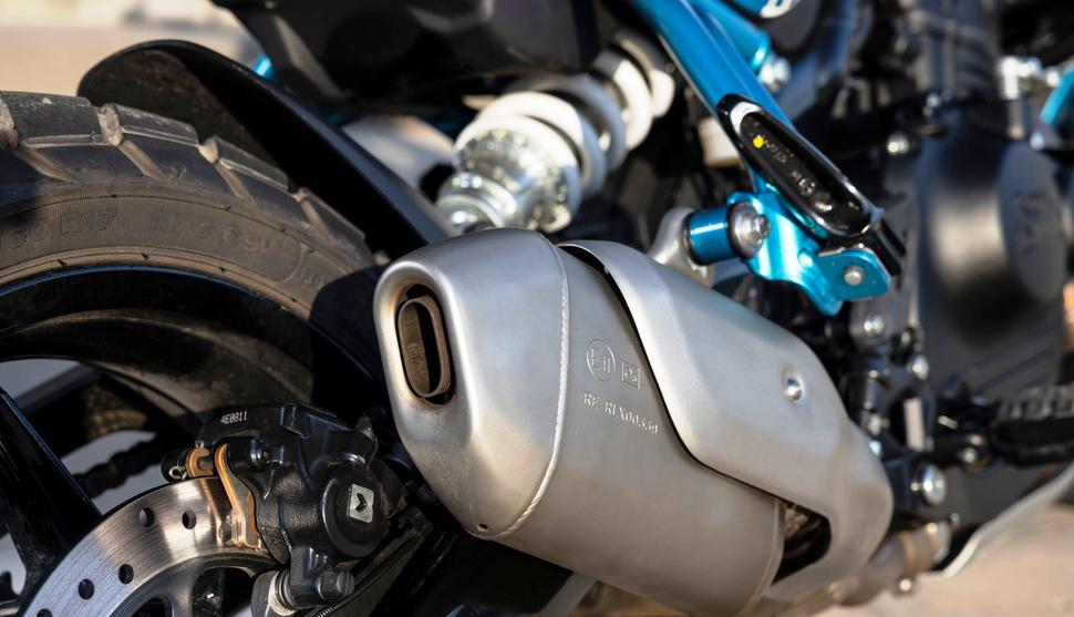 Колёсная база Royal Enfield Guerilla 450 в 1440мм чуть короче, чем у Himalayan, и вполне соответствует тому, как сбалансированно Guerilla управляется с сухой массой в 185кг. Рулится он просто изумительно, а положение и изгиб руля относительно сиденья дают удобную позу и позволяют легко загружать переднее колесо, когда наваливаешь на выходе из поворотов. Тормозов ByBre достаточно, передний вполне информативный и мощный, задний - тоже как надо.