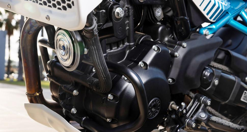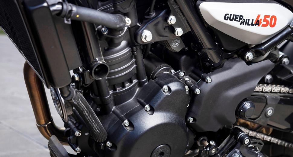 Несмотря на иную настройку ЭБУ, по механике мотор тот же, что и на Himalayan 450 - 42-миллиметровый дроссельный узел, электронный газ, диаметр поршня 84,0мм, ход - 81,5мм, степень сжатия равна 11,5:1. Двигатель оснащён проскальзывающим сцеплением с тросовым приводом и шестиступенчатой трансмиссией.