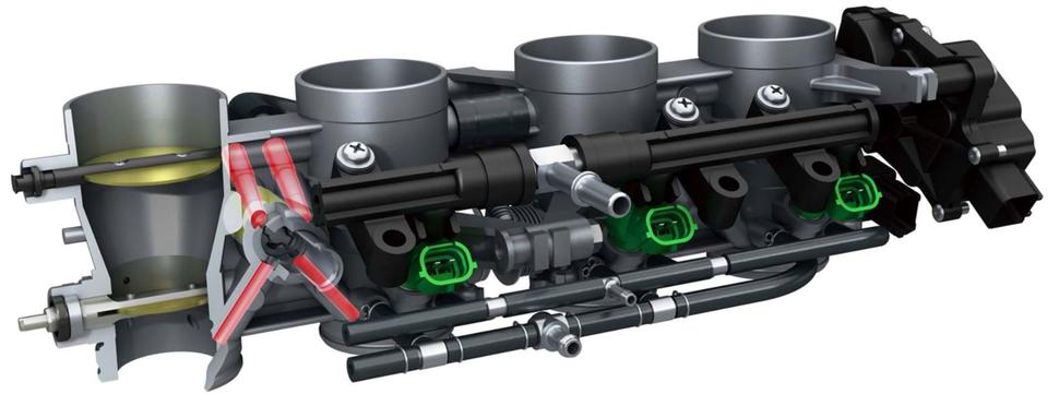 Тот же двигатель, что и на GSX-R750 K5-го поколения, почти тот же, что и на предыдущем GSR750, но с небольшими доработками, позволившими снять на восемь процентов больше мощности и поднять пик крутящего момента до 81Нм. Максимальная мощность составляет 114лс благодаря новой системе вентиляции картера, снизившей насосные потери мощности, а 10-струйные форсунки обеспечивают соответствие эконормам Euro 4 и экономичный расход топлива. Новый выхлоп 4-в-2-в-1 с выравнивающими патрубками обеспечил прирост мощности на низких и средних оборотах. В выхлопе установлен каталитический конвертер, но никакого клапана для регулирования подпора здесь нет. Звук выхлопа относительно тихий, а аирбокс оснащён тремя оптимизированными заборниками, издающими приятный звук, особенно радующий во время езды. С первой по пятую передачи снижены для ускорения, а шестая такая же, как на прошлом GSR. На базе электронного газа с Dual Throttle Valve реализован трёхуровневый отключаемый трекшн-контроль, уже упомянутое управление газом при отпускании сцепления, автоматическая регулировка холостого хода. Из прочих особенностей - система лёгкого запуска с одного нажатия кнопки стартера и ABS, о которых я уже говорил.
