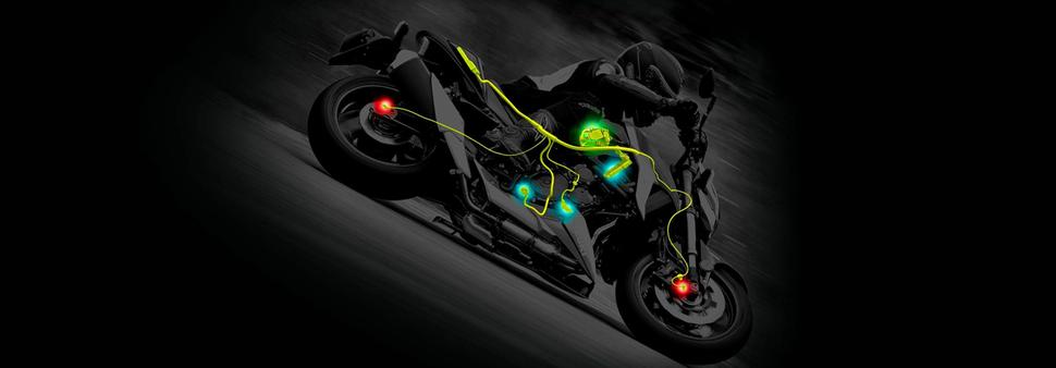 При этом сами тормоза от Nissin выше всяких похвал: четырёхпоршневые радиальные суппорта на 310-х полуплавающих дисках спереди. У них отличный начальный захват и чуткая модуляция с великолепным запасом тормозного усилия. Заднего тормоза как раз достаточно для поворотов и устойчивости. Я при всём желании не могу придраться к тормозам на этом мотоцикле - даже положение рычага и его форма оптимальны и естественны.