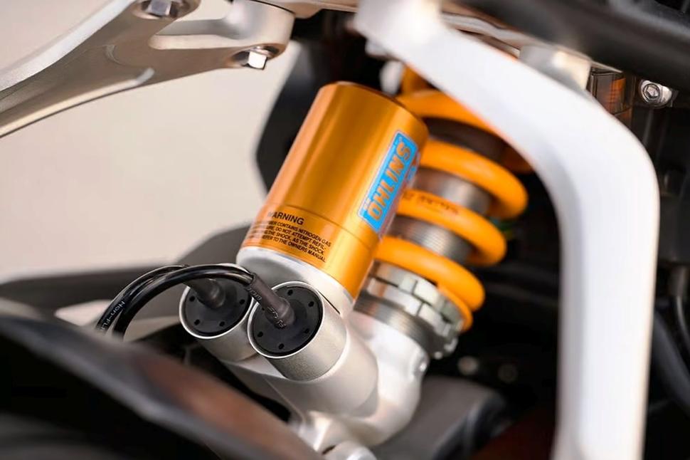 Электронные подвески Ohlins повзрослели до версии Smart EC 3.0, и по заявлению Triumph, они реагируют быстрее благодаря новой технологии золотниковых клапанов. Хитроумная система OBTI постоянно отслеживает и подстраивает характеристики сглаживания подвесок, причём в ней отдельно настраивается жёсткость передней и задней подвески и уровень поддержки на торможении, ускорении, в наклоне и при езде по прямой.