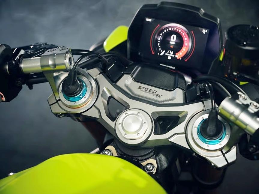 В частности, это титановый выхлоп Akrapovic и рулевой демпфер Ohlins SD EC с электронным управлением. Демпфер управляется электроникой полуактивных подвесок Ohlins SmartEC3 OBTi, которые дебютировали на Speed Triple 1200 RS 2025 года.