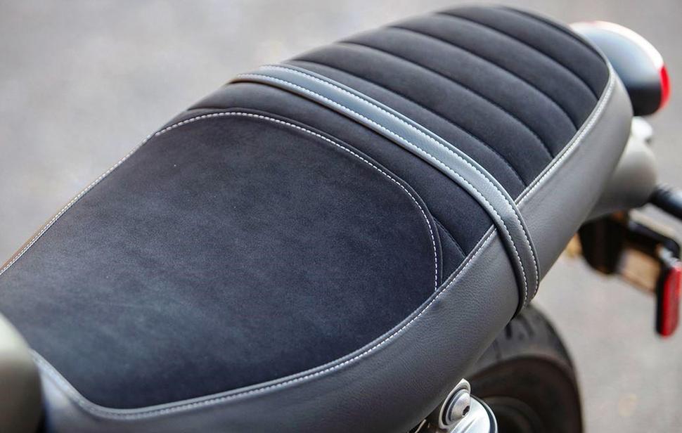 Длинное сиденье Triumph Street Twin - мягкое и удобное для дальних поездок, а когда накапливается усталость, на нём есть куда переместиться, чтобы размять затёкшие места. Да и для езды вдвоём его хватает, даже когда за рулём девушка, а пассажиром у неё большой мужчина. Обрезиненные подножки нравятся не всем, но лично я не вижу в них ничего плохого, за вычетом того, что они несколько высоковаты для рослых людей, вынуждая их сгибать колени больше желаемого. Руль обеспечивает вертикальную посадку и отличный удобный хват для лёгкого руления.