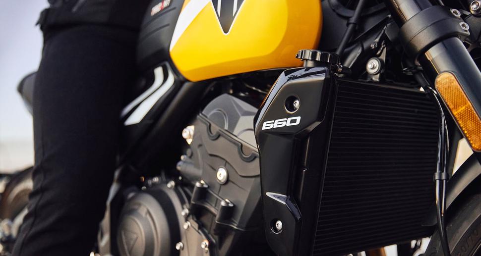 Trident 660 в базовом чёрном варианте обойдётся в 14290 австралийских долларов, это на 609 долларов дешевле, чем MT-07. Если говорить о более весёлых расцветках (их три), то разница составит уже 309 долларов. Межсервисные интервалы у этого мотора составляют 16000км для малого обслуживания и 32000 между большими сервисами с регулировкой клапанов, так что производитель определённо доверяет технической части этого мотоцикла.