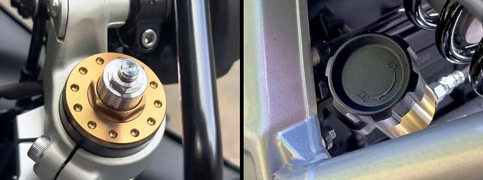 А вот посадка у Yamaha XSR900 GP уникальная. Версия GP оснащена клипонами чуть выше верхней траверсы. Их грипсы находятся на 114мм ниже и 93мм дальше от райдера. Дальше, подножки смещены на 26мм вверх и назад, а седло сдвинуто на 12мм вперёд и на 27мм выше, что увеличило высоту посадки до 835мм.