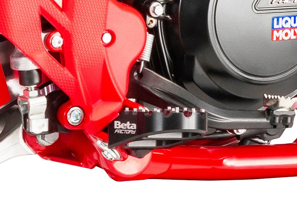 Теперь о минусах Beta 300 RX: даже несмотря на гениальную систему снятия седла с помощью одной кнопки, самому седлу недостаёт комфорта и правильной формы. Если для кросса это ещё куда ни шло, то в эндуро, где порой бывают длинные прохваты сидя, седло доставит настоящие муки. Сама обшивка седла отличная, так что вопрос только к его основе и поролону. Сверхширокие подножки из фрезерованного алюминия со стальными штырями идут в заводской комплектации, но изнашиваться они будут быстрее, чем чисто стальные, и при износе будут терять зацеп.
