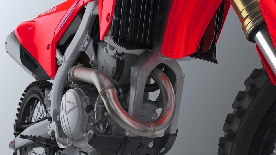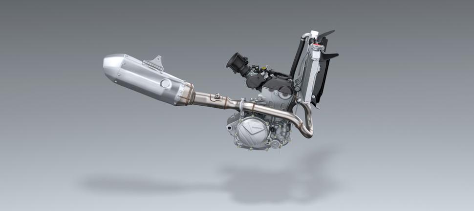 В мотокроссе традиционно в почёте верховые моторы, и Honda CRF250R всегда славилась подрывом на верхах. Но в пару к неплохой тяге на средних оборотах масштабные доработки впускного и выпускного трактов повысили и тягу на низах. Серьёзная работа была проведена и над точной доводкой геометрии распредвалов для эффективности на верхах и общей надёжности, а 9 дисков сцепления и обновлённая трансмиссия с более прочными компонентами обеспечивают максимальную эффективность использования дополнительной мощности мотора.