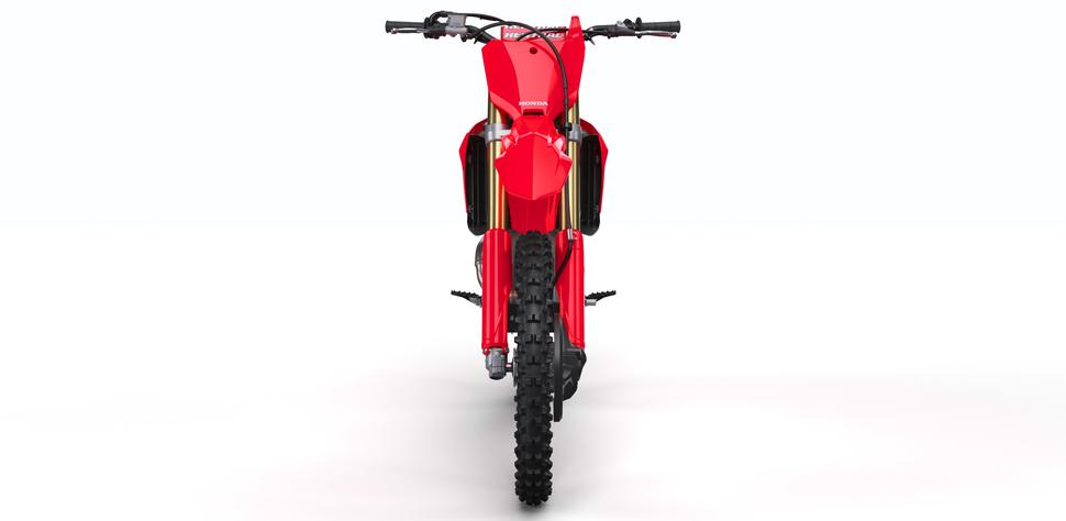 Honda CRF450R идёт впереди, а CRF250R следует за ней по пятам. Шасси младшей модели отстаёт от флагмана на год, и в версии 2022 года оно соответствует платформе, дебютировавшей на серийной CRF450R 2021 года после интенсивной разработки совместно с HRC. Благодаря более тяговитому двигателю и снижению веса на 3 килограмма, изменениям геометрии и доработкам подвесок, новая CRF250R стала ещё более удобным и быстрым мотоциклом.