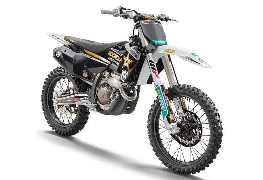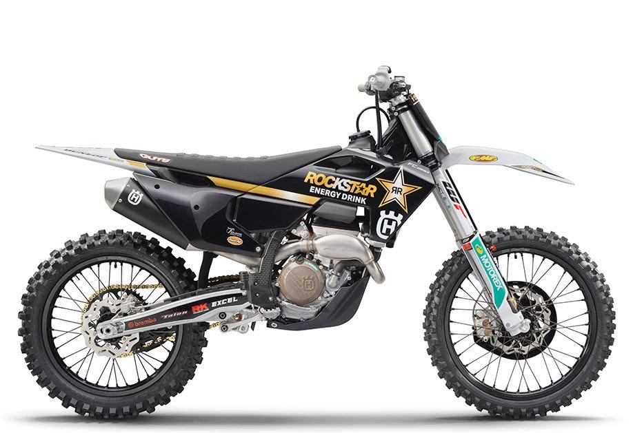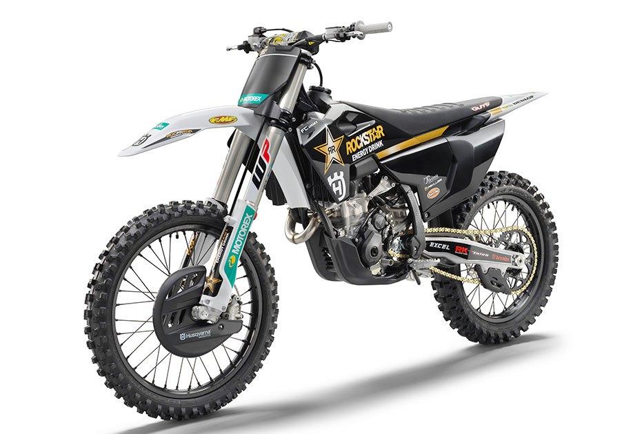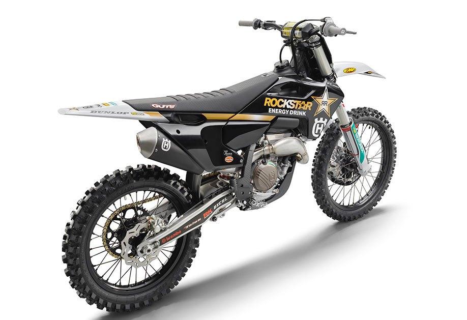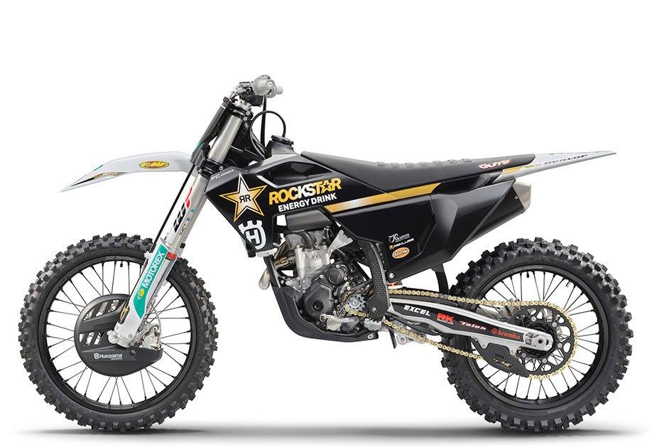 Зато мотоцикл оснащён рядом особенностей, позволяющих ему называться Rockstar Edition, то есть, мотоциклом в стиле заводской команды. Например, полностью чёрные колёса, фрезерованные на ЧПУ траверсы, кожух переднего тормозного диска, однопозиционный holeshot device, полуплавающий 260-миллиметровый тормозной диск, а также композитная полиамидная нижняя защита. И, конечно, графика Rockstar Energy Husqvarna Factory Racing и противоскользящая обшивка седла Guts Racing.