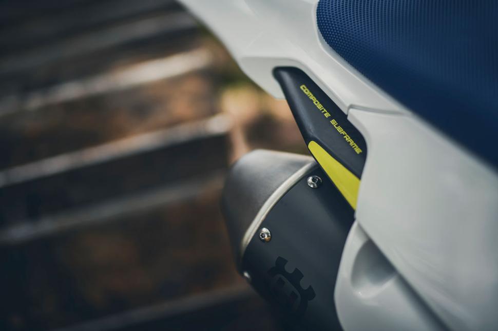 Подрамник Husqvarna FC250 2019, изготовленный из углеродного композита, теперь состоит из двух частей, а не из трех, что делает его более жестким и снижает вес. Как и в прошлом году, подрамник Husqvarna находится на 13 мм ниже, чем подрамник KTM.