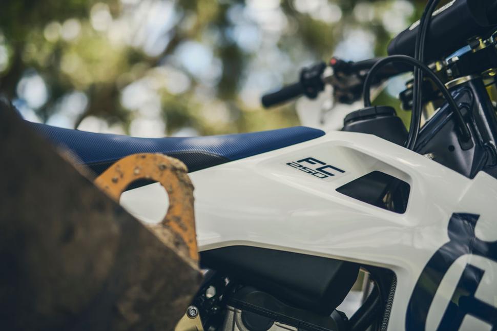 Обвес Husqvarna FC250 2019 года был заметно обновлен. Боковые панели под номер стали более узкими и они разделены на две части, которые, к сожалению, друг с другом совпадают не идеально. Пластик радиатора также стал уже и чуть приподнялся. Под передней номерной табличкой находится желтая пластиковая пластина, которая защищает нижнюю траверсу, но прикрывает её только на половину. Сидение стало толще посередине и более округлое, так как многие гонщики жаловались на то, что они ударяются о раму при прыжках.
