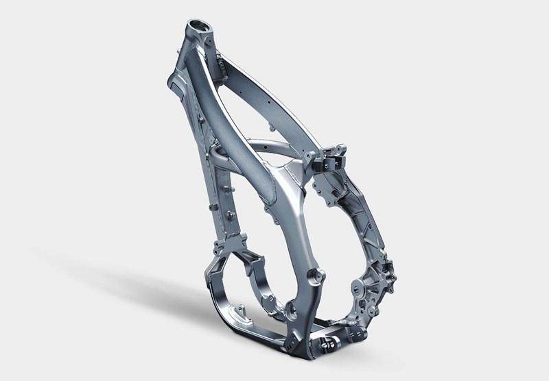 Узкая алюминиевая периметральная рама KX250 основана на флагманской модели KX450 и обеспечивает лёгкое, отзывчивое руление и компактность корпуса мотоцикла. Она состоит из кованых, экструдированных и литых элементов, обладая оптимизированным балансом жёсткости, и хотя многие её элементы являются общими с рамой KX450, литые части рамы типа креплений амортизатора и двигателя были созданы специально под KX250. Двигатель в шасси KX250 является нагруженным элементом, а маятник имеет жёсткость, соответствующую характеристикам рамы и повышающую сцепление заднего колеса с поверхностью. Центр масс и ключевые параметры геометрии - расположение шарнира маятника, выходной звезды, задней оси были тщательно просчитаны.