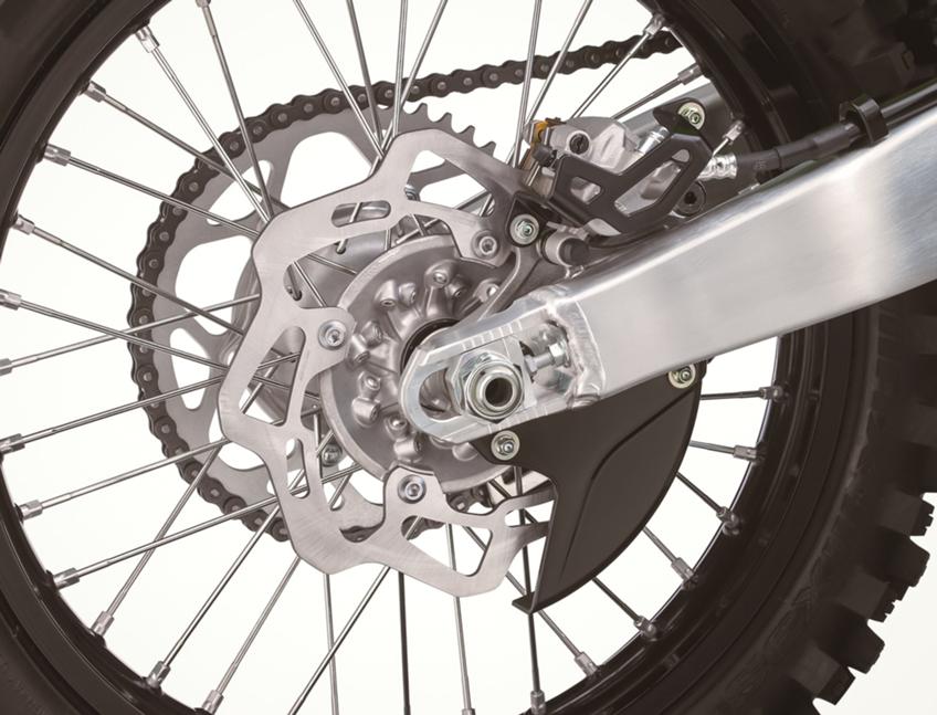 Компания Kawasaki славится эргономикой своих кроссовых мотоциклов. Это утверждения абсолютно верно и в отношении новейшего KX450. Благодаря водительской посадке, расположению руля Renthal 7/8 и подножек, а также толщине пластиковых деталей мотоцикла, на него всегда легко запрыгнуть и умчаться прочь. Kawasaki KX450 по наследству от прошлого поколения досталась потрясающая устойчивость, он легче проходит повороты. Новые компоненты тормозной системы справляются со своей работой на все сто. Размер заднего тормозного диска вырос до 250 мм, но во время тест-драйва водители не почувствовали никакой разницы. Возможно, разница будет ощутима тем, кто привык прихватывать тормоз. И еще одно замечание: рычаги очень тонкие по сравнению с предыдущей моделью, да и с другими кроссовыми мотоциклами в целом.