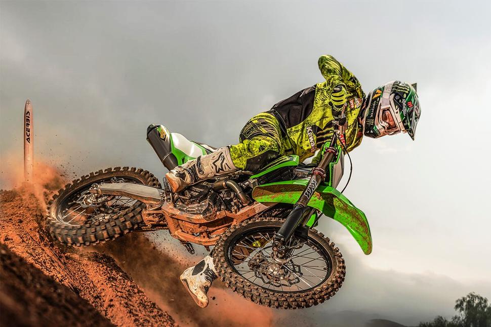 Достаточно просто запустить мотор Kawasaki KX450SR, чтобы понять, что это не базовая модель. Звук выхлопа чистый и резкий, как и отклик на открытие газа. Мотор реагирует скорее как YZ450F или CRF450R, с рыком, способным спугнуть с трассы средних размеров медведя. Мотор ощутимо лучше тянет по всему диапазону оборотов, что позволит при желании поиграться ещё и со звёздами для максимальной мощности.